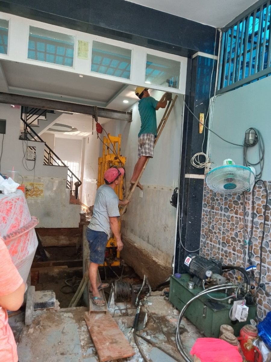 Hạng mục công việc này bao gồm việc ép 04 cọc bê tông gia cường, chống lún, chống nghiêng, nâng chỉnh nghiêng với độ nghiêng 28 cm. Đây là một công việc đòi hỏi sự chính xác và kỹ thuật cao, nhưng với đội ngũ kỹ sư và công nhân lành nghề của Thần Đèn Thiên Phúc, họ đã hoàn thành công việc một cách xuất sắc.