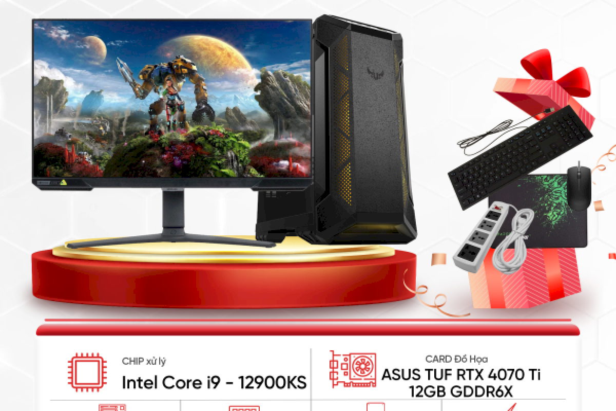 Bộ Máy Tính Gaming Thế Hệ 12 i9-12KS sở hữu: i9-12900KS/RAM 32G/SSD 1TB/VGA RTX 4070 Ti 12GB/LCD Samsung Odyssey